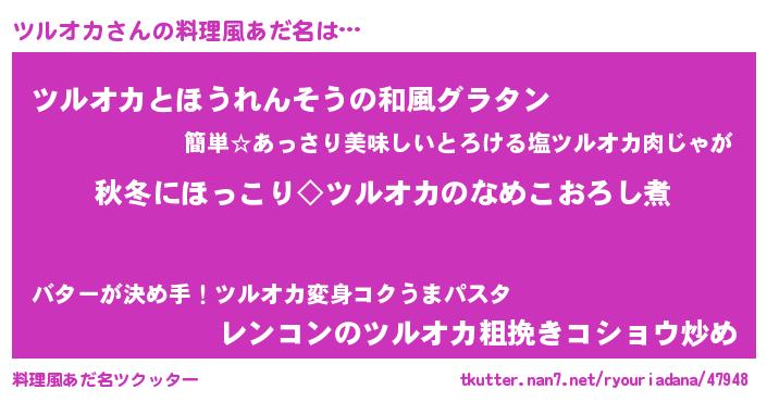 | 男性向けラノベタイトル風あだ名 | 『ツルオカに滅ぼされるだけの簡単なお仕事です』 |