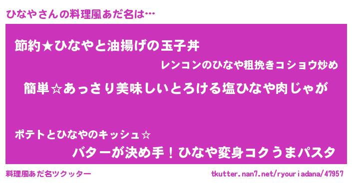 | 意味不明あだ名 | 『永久保存ひなや』『ペロリンひなや』 |