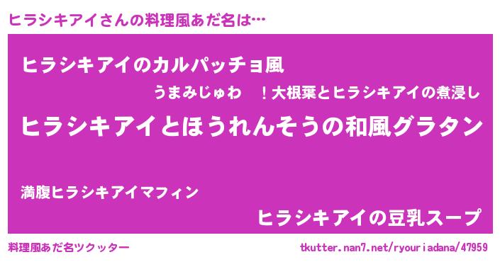 | 男性向けラノベタイトル風あだ名 | 『転生したらヒラシキアイだった件』 |