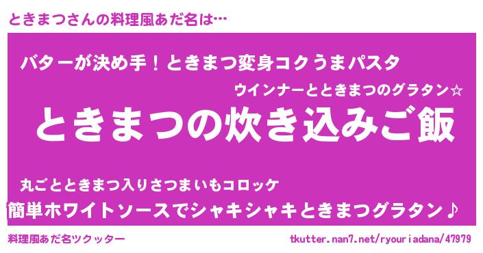 | ヒーロー風カッコイイあだ名 | 『慈愛の使者ときまつ』『黄金騎士トキ』 |