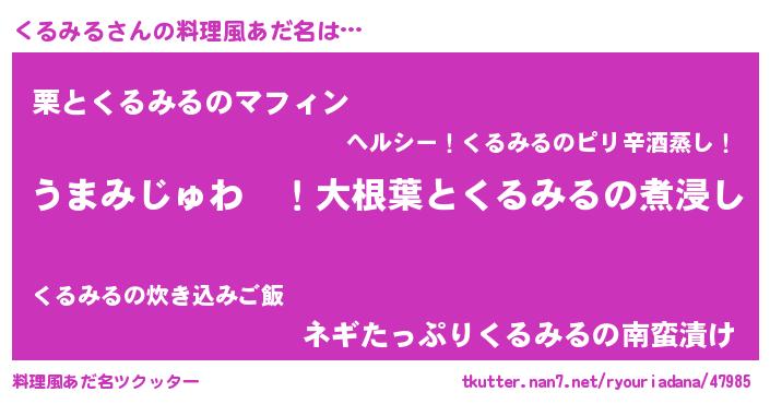 | ポケモン風あだ名 | 『クルミダネ』『クルゴンZ』 |