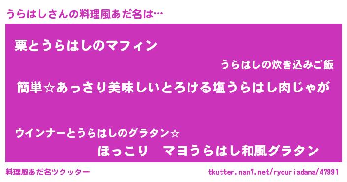 | ヒーロー風カッコイイあだ名 | 『ネオウラハシ』『仮面ウラダー』 |