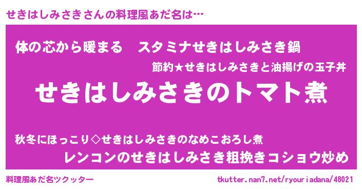 | 意味不明あだ名 | 『眠気覚ましガムせきはしみさき味』 |