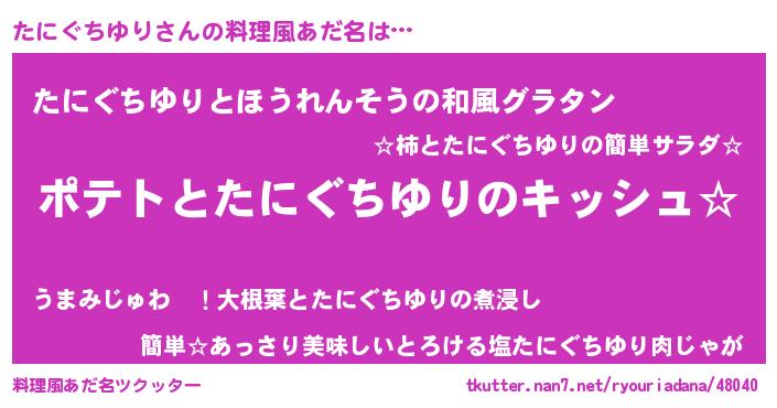 | 男性向けラノベタイトル風あだ名 | 『たにぐちゆりの嫁は女の子じゃないと思った?』 |