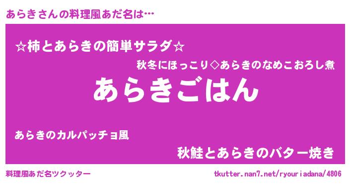 | 意味不明あだ名 | 『たけのこ科あらき属』『永久保存あらき』 |