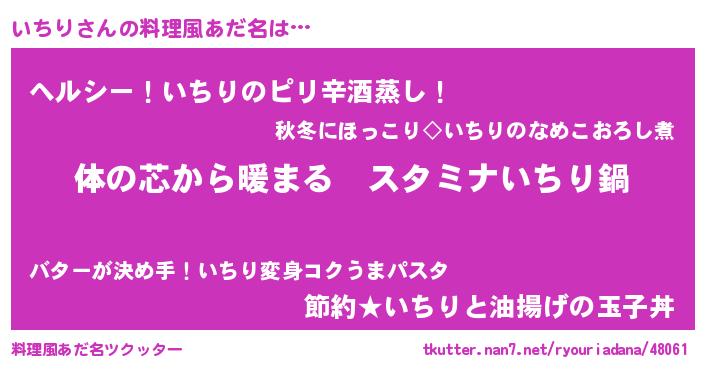 | 意味不明あだ名 | 『いちりフォーエバー』『自称いちり』 |