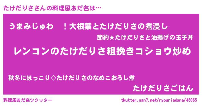 | 胡散臭い通販商品みたいなあだ名 | 『ガンによく効く冬虫夏草…その名も「たけだりさ」』 |