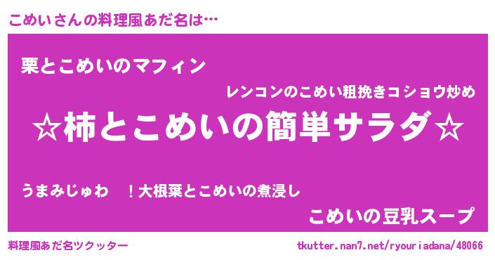 | ヘコむあだ名 | 『こめぷりん』『牛乳』『こめふぇ~』 |
