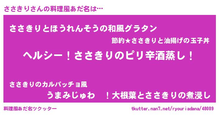 | 意味不明あだ名 | 『自称ささきり』『もやし科ささきり属』 |