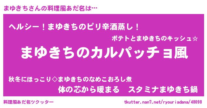 | ヒーロー風カッコイイあだ名 | 『仮面マユダー』『究極戦士マユキチ』 |
