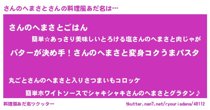 | ヘコむあだ名 | 『さん太郎』『さんのへまさと(笑)』 |