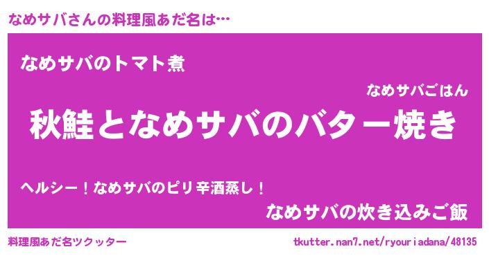 | ヒーロー風カッコイイあだ名 | 『ネオナメサバ』『正義の使者なめサバ』 |
