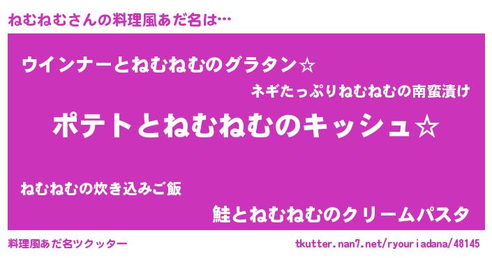 | ポケモン風あだ名 | 『ヒネムネム』『ネムネダネ』 |