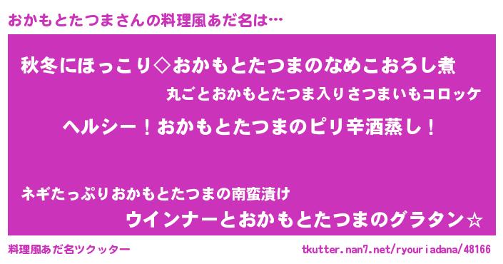 | 男性向けラノベタイトル風あだ名 | 『Re:おかもとたつまから始める異世界生活』 |