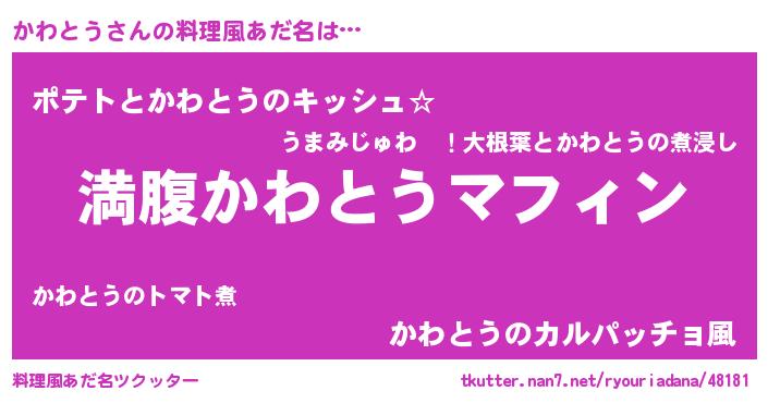 | 男性向けラノベタイトル風あだ名 | 『かわとうという概念が存在しない退屈な世界 』 |