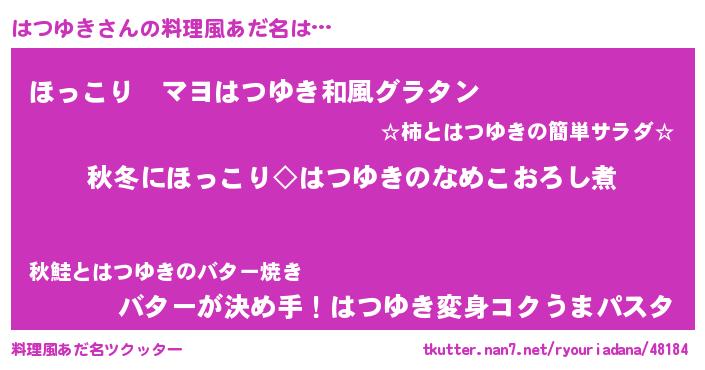 | ヒーロー風カッコイイあだ名 | 『仮面ハツダー』『慈愛の使者はつゆき』 |