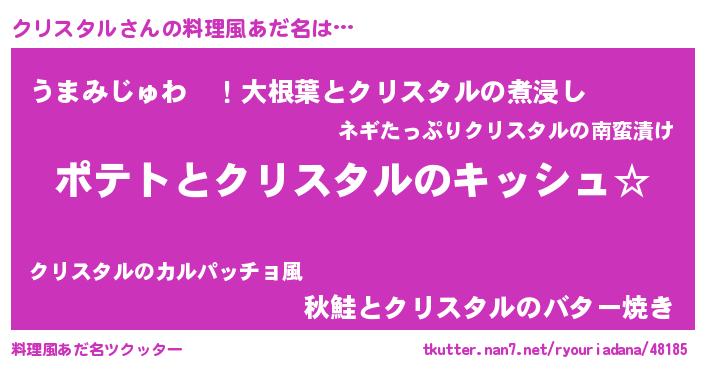 | 男性向けラノベタイトル風あだ名 | 『クリスタルの嫁は女の子じゃないと思った?』 |