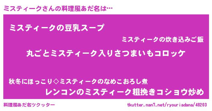 | 意味不明あだ名 | 『住所不定無職ミスティーク(47歳)』 |