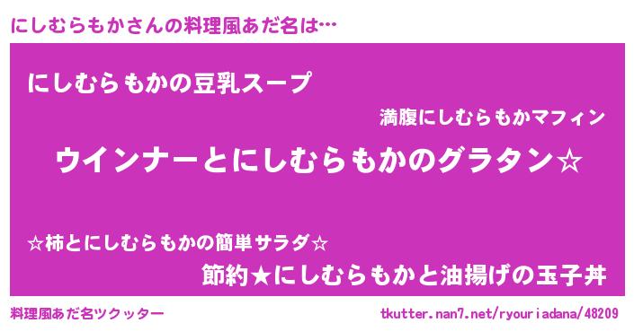 女子向けラノベタイトル風あだ名 | 『にしむらもか伯爵の花嫁』 |