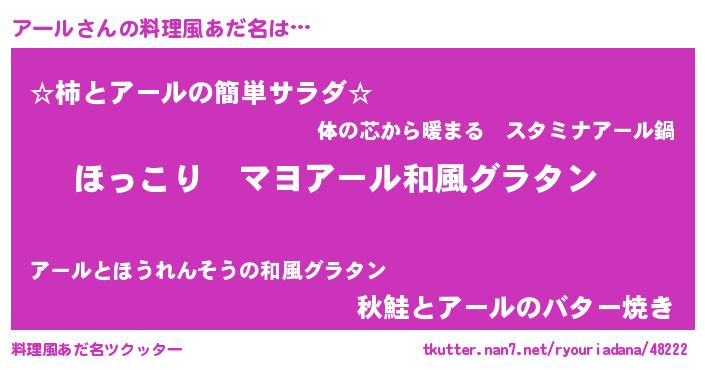 | ヘコむあだ名 | 『アール(笑)』『なまこ酢』 |
