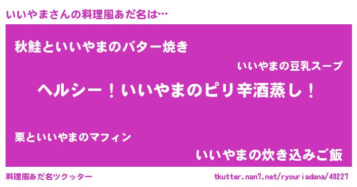 | 男性向けラノベタイトル風あだ名 | 『Re:いいやまから始める異世界生活』 |
