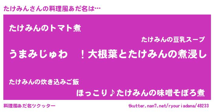 | 意味不明あだ名 | 『たけみんフォーエバー』 |