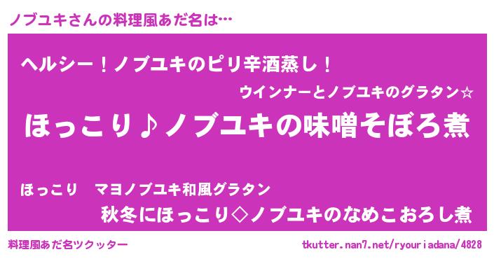 | ヒーロー風カッコイイあだ名 | 『スーパーノブユキ』『究極戦士ノブユキ』 |