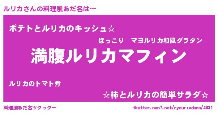 | 意味不明あだ名 | 『永久保存ルリカ』『しいたけ科ルリカ属』 |