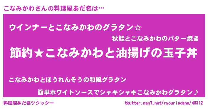| 胡散臭い通販商品みたいなあだ名 | 『モテモテ間違いなし霊験あらたかなお札…その名も「こなみかわ」』 |