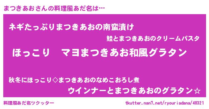 | 男性向けラノベタイトル風あだ名 | 『この素晴らしい世界にまつきあおを!』 |