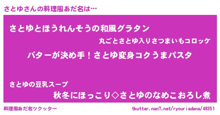 | 欧米人風あだ名 | 『ダニエルさとゆ』『トリンドルさとゆ』 |