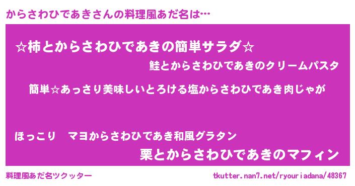 | ヘコむあだ名 | 『からさわひであき(笑)』『からぷりん』 |