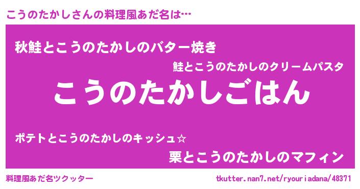 | 胡散臭い通販商品みたいなあだ名 | 『絶対に幸福をもたらす水素水…その名も「こうのたかし」』 |