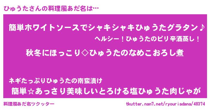 | 男性向けラノベタイトル風あだ名 | 『ひゅうたに滅ぼされるだけの簡単なお仕事です』 |