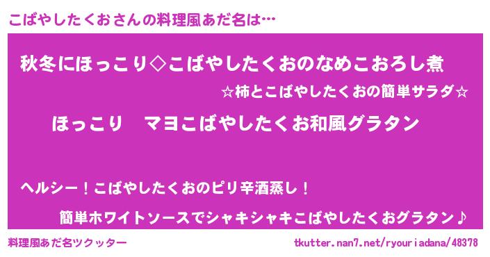 | 男性向けラノベタイトル風あだ名 | 『この素晴らしい世界にこばやしたくおを!』 |
