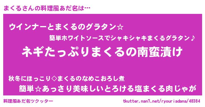 | 2回繰り返すあだ名 | 『まくまく』『ままくく』『ごみごみ』 |