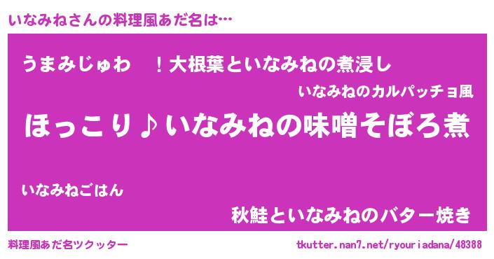 | 男性向けラノベタイトル風あだ名 | 『いなみねの憂鬱』『魔弾の王といなみね』 |