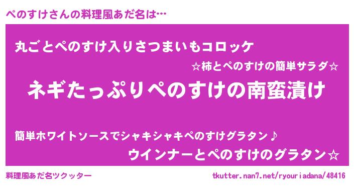 | ツイッター | ぺのすけさんのツイッターID『namakemono_idle』 |