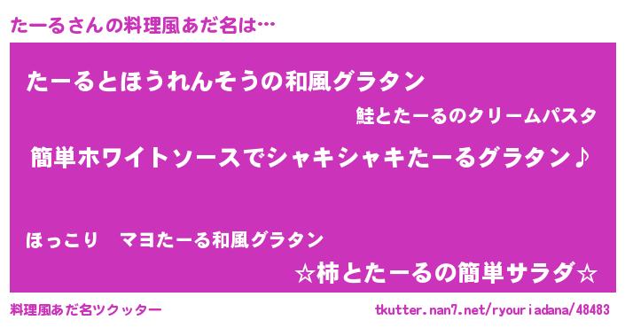 | 意味不明あだ名 | 『とにかく怪しいたーる』『自称たーる』 |