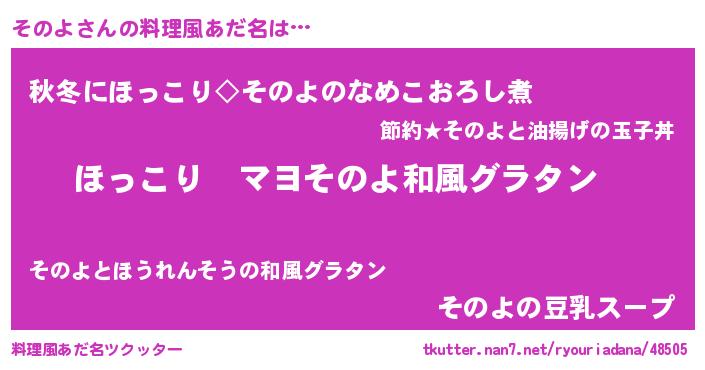 | 意味不明あだ名 | 『住所不定無職そのよ(74歳)』 |