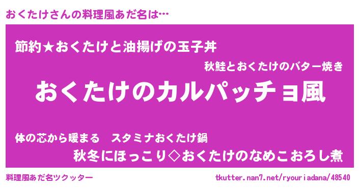 | 意味不明あだ名 | 『住所不定無職おくたけ(71歳)』 |