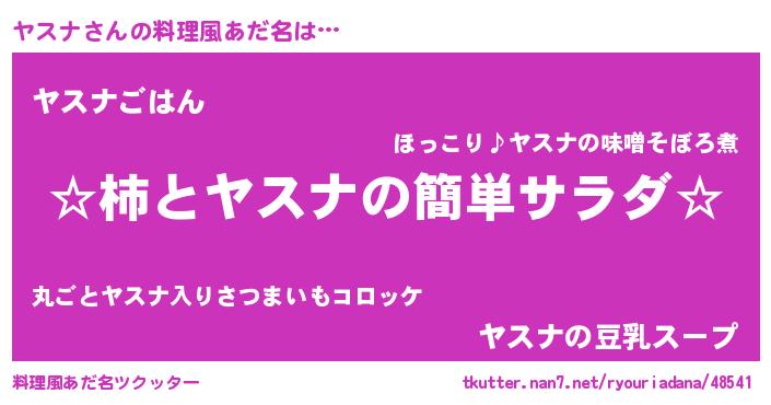 | 男性向けラノベタイトル風あだ名 | 『緋弾のヤスナ』『ヤスナスレイヤー』 |
