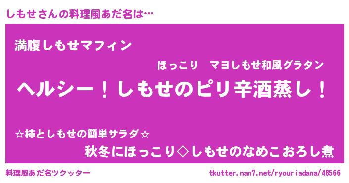 | 意味不明あだ名 | 『自称しもせ』『永久保存しもせ』 |