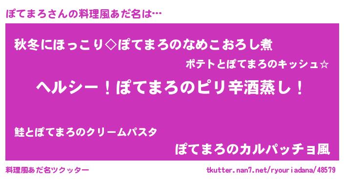 | 意味不明あだ名 | 『自称ぽてまろ』『めかぶ科ぽてまろ属』 |