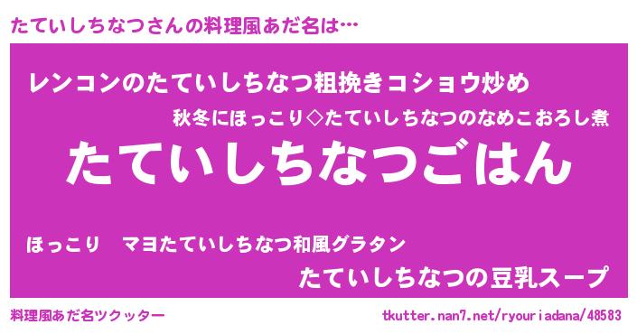 | 男性向けラノベタイトル風あだ名 | 『タテイシチナツスレイヤー』 |