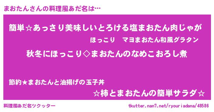 | 男性向けラノベタイトル風あだ名 | 『まおたんに滅ぼされるだけの簡単なお仕事です』 |