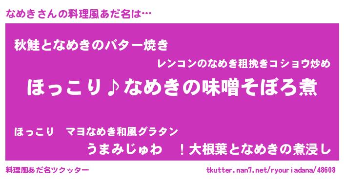 | 男性向けラノベタイトル風あだ名 | 『なめきの憂鬱』『魔法科高校のなめき』 |