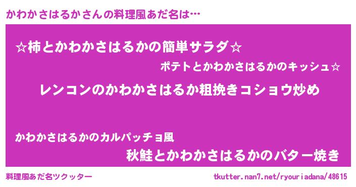 | 女子向けラノベタイトル風あだ名 | 『かわかさはるかなんてお断りですっ。』 |