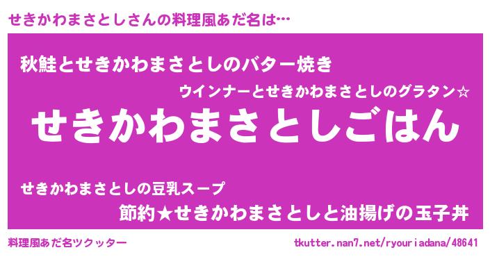 | 男性向けラノベタイトル風あだ名 | 『転生したらせきかわまさとしだった件』 |