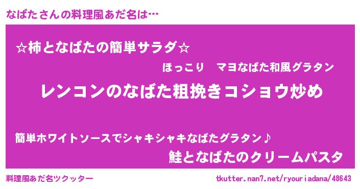 | 欧米人風あだ名 | 『ケンブリッジなばた』『ダニエルなばた』 |